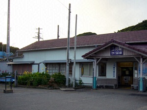 駅舎脇にあるホーム上には木の舟が置かれている。これはかつて花壇代わりに使用していたが、現在は土が入っているだけになっている。