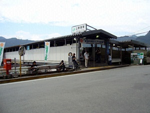 駅の駐輪場そばにある踏切は、カーブを走行する電車の絶好の撮影ポイントになっている。